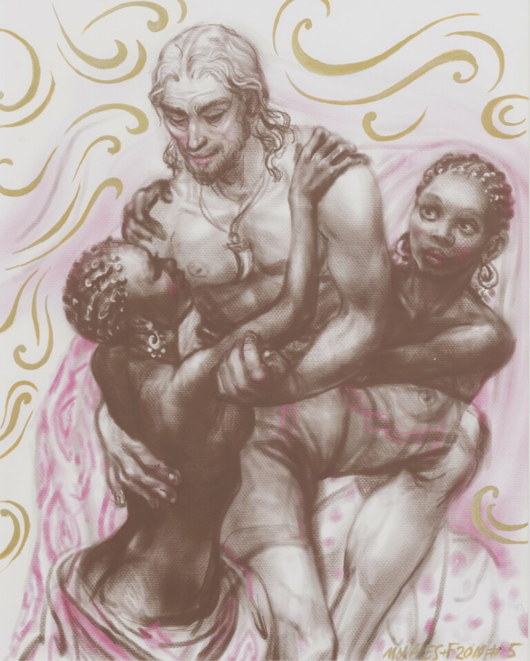Dibujo digital sobre papel, pintura dorada