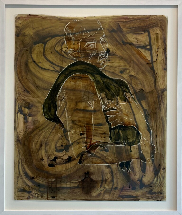 Grafito, acuarela y gouche bañado en cera