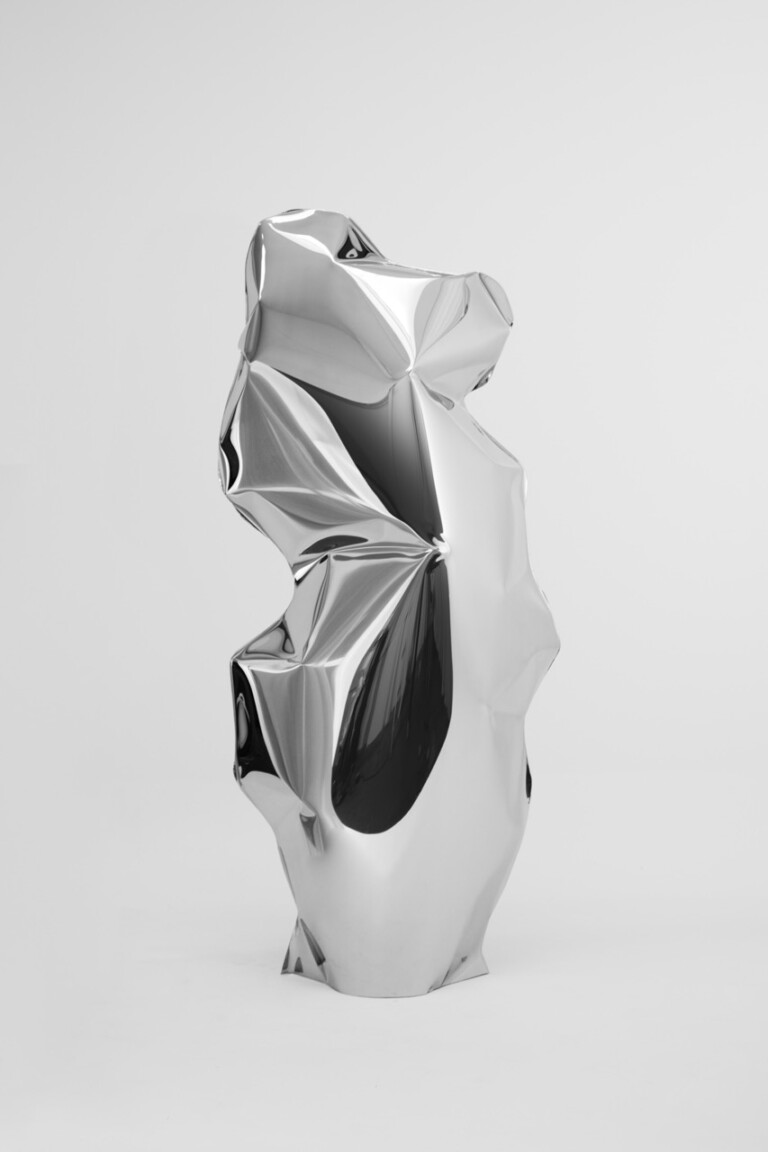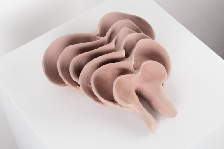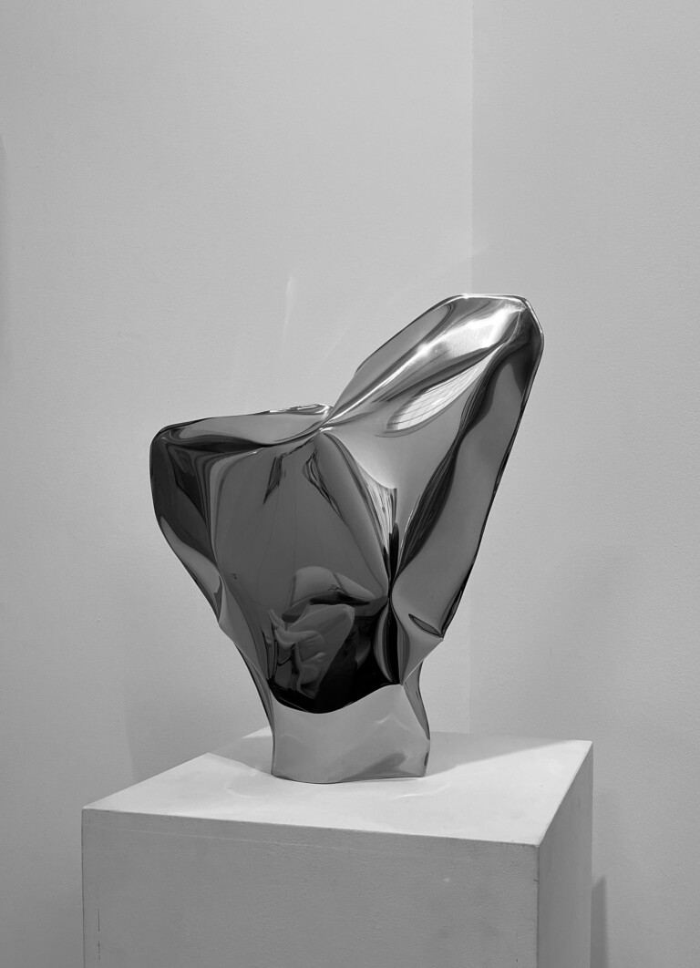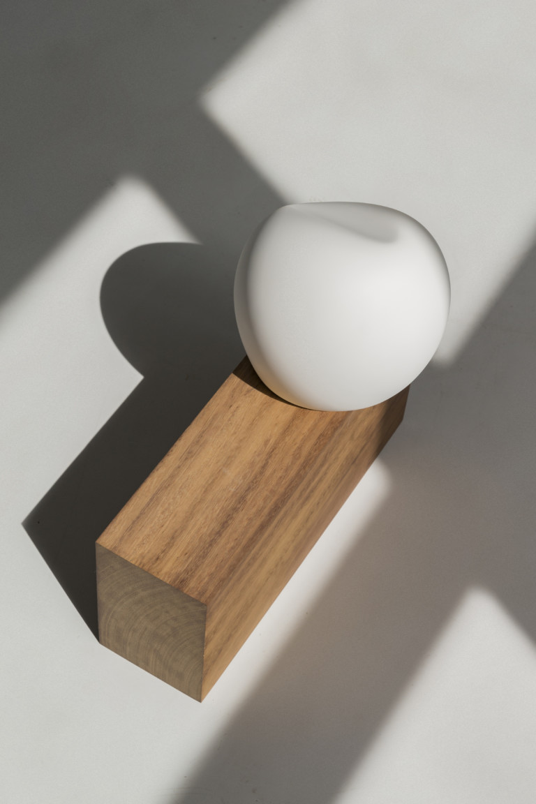 escultura de polvo cerámico lacado y madera de Iroko