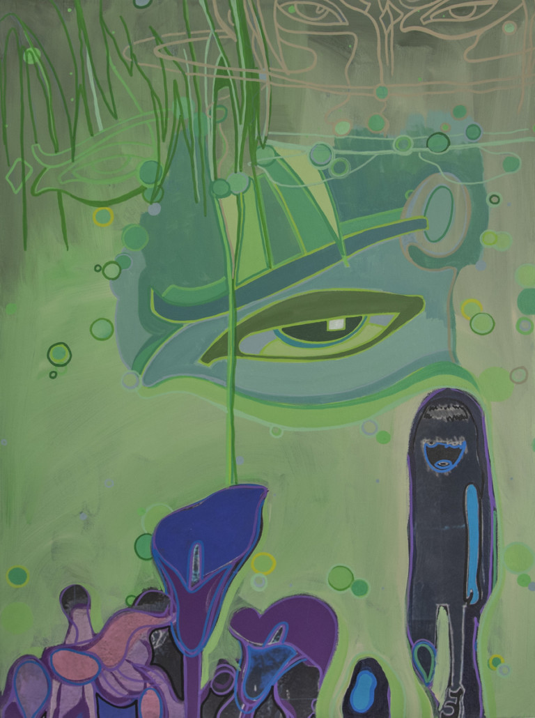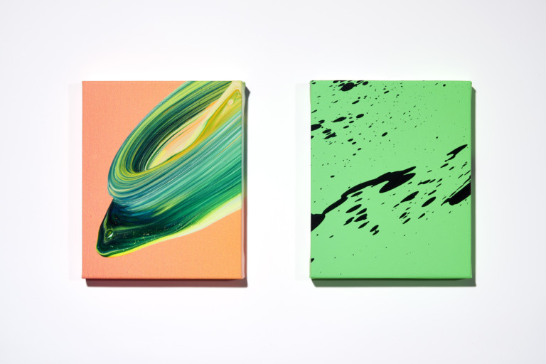 Paint pen and acrylic on UV printed canvas