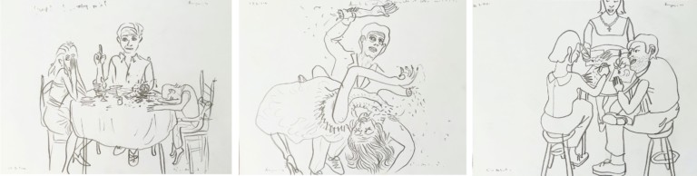 Graphite, pencil color, Indian ink, acrylic on paper