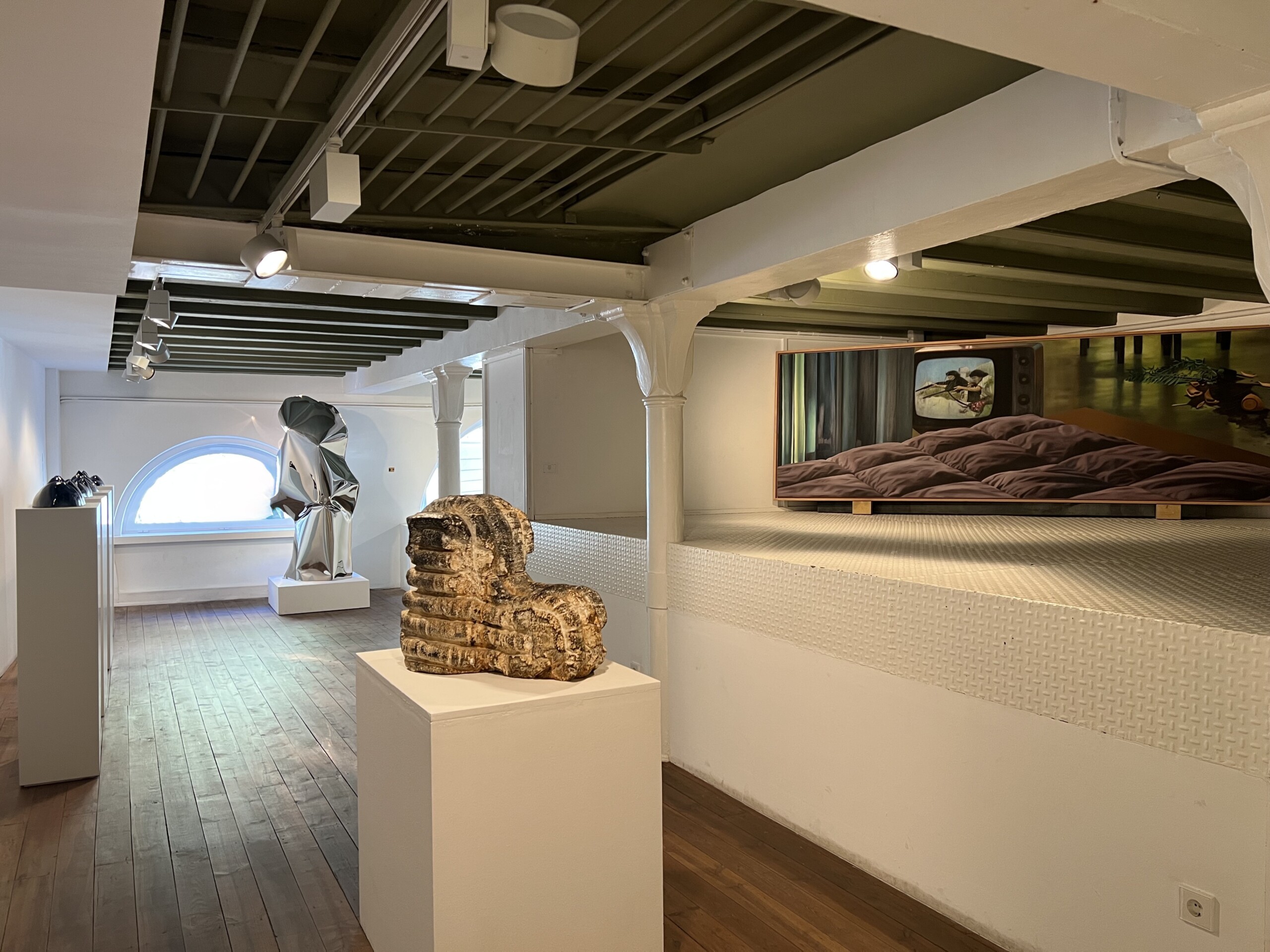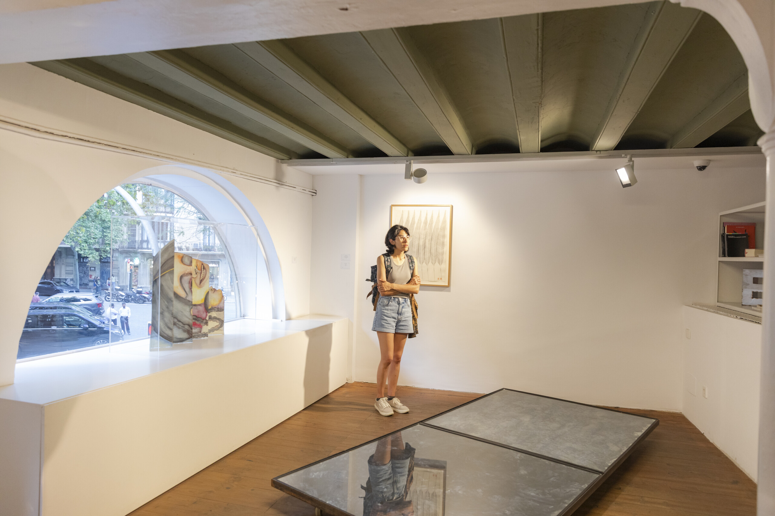 Así, entre trazos y pedazos, la mezzanina se convierte en un escenario. La pintura es prólogo; las esculturas, capítulos; los sonidos, murmullos de fondo. Podemos recorrer la sala como quien atraviesa un cuento abierto: un relato de acción y consecuencia, de gestos y de huellas visibles e invisibles.