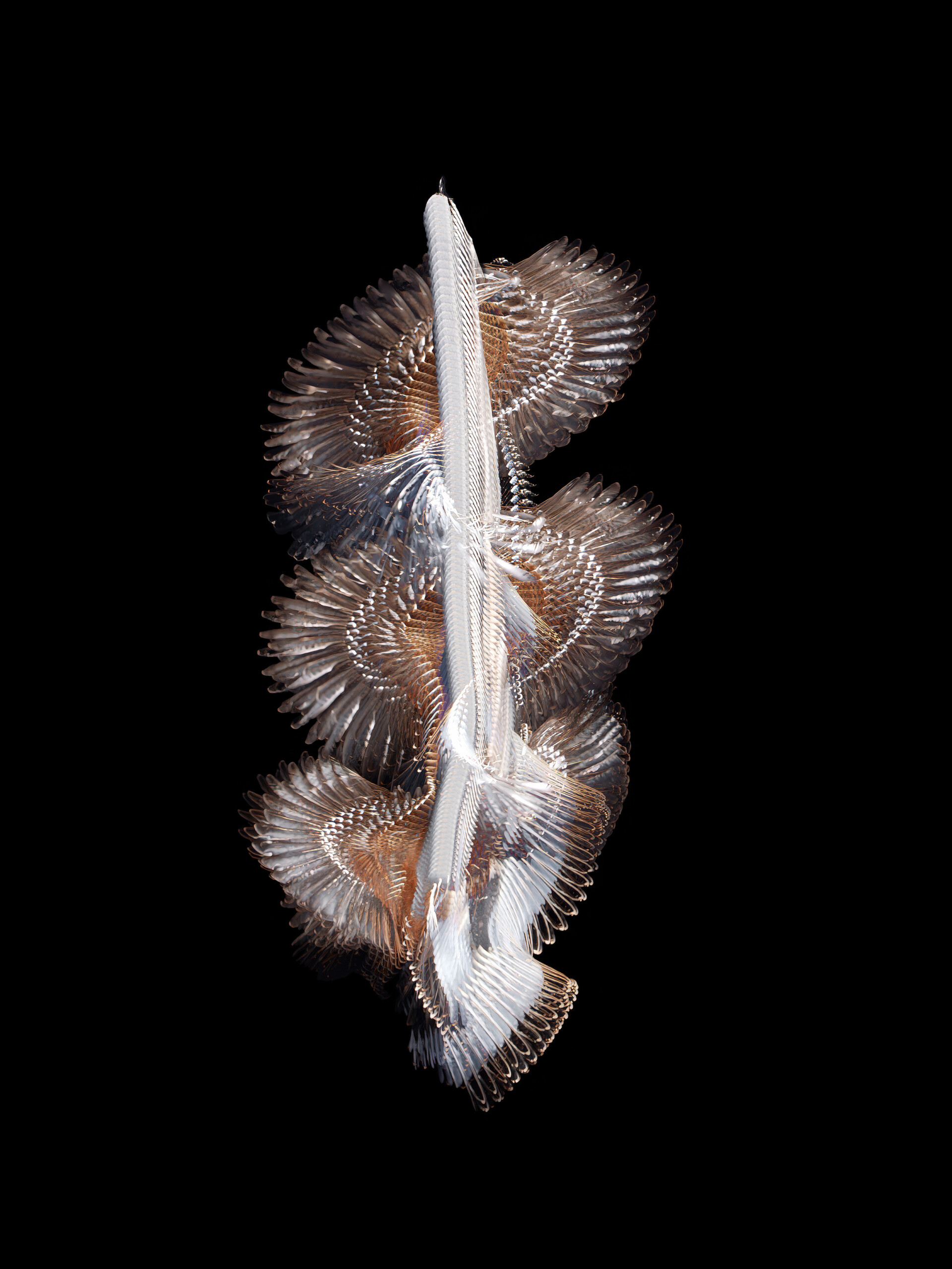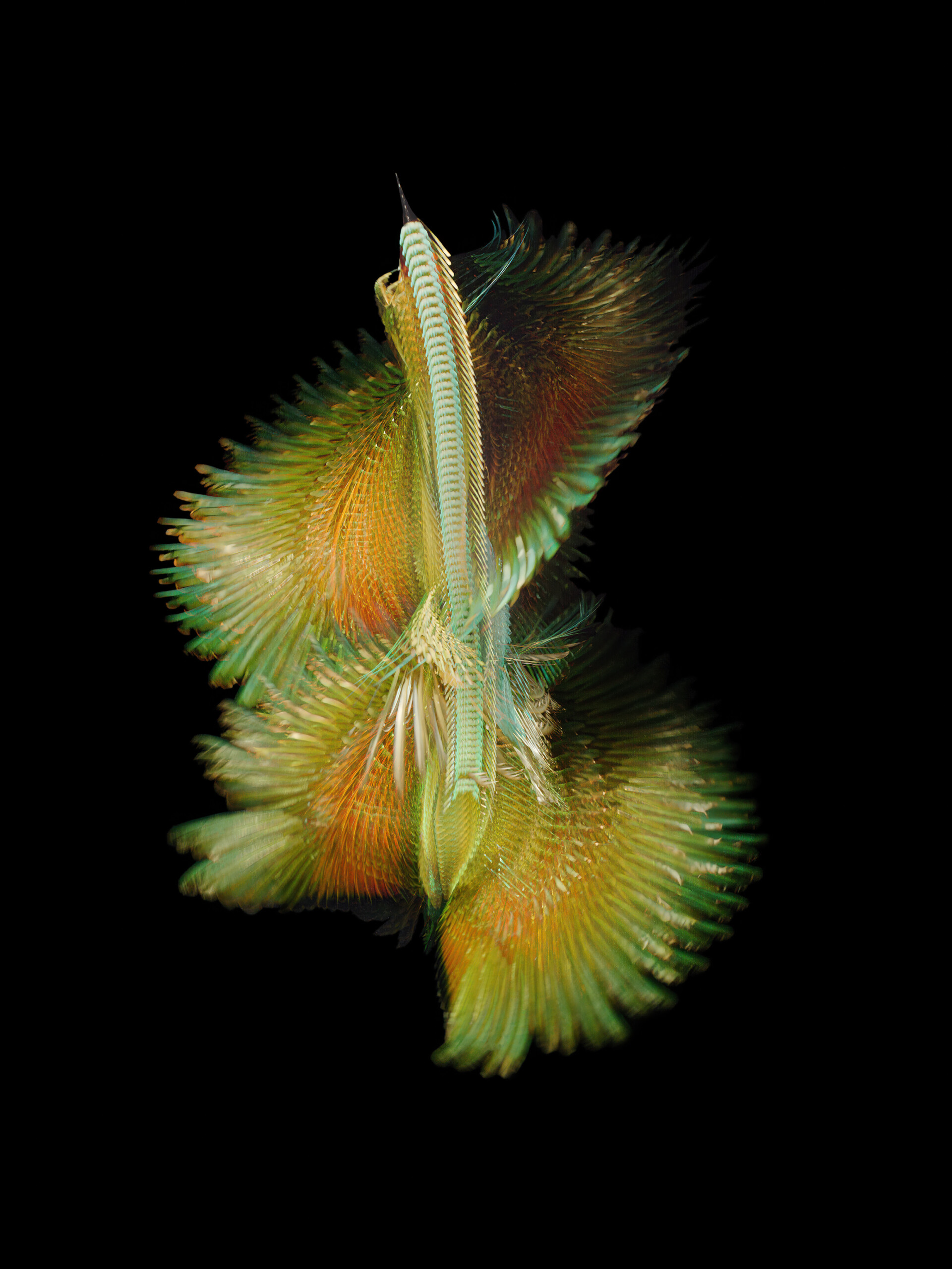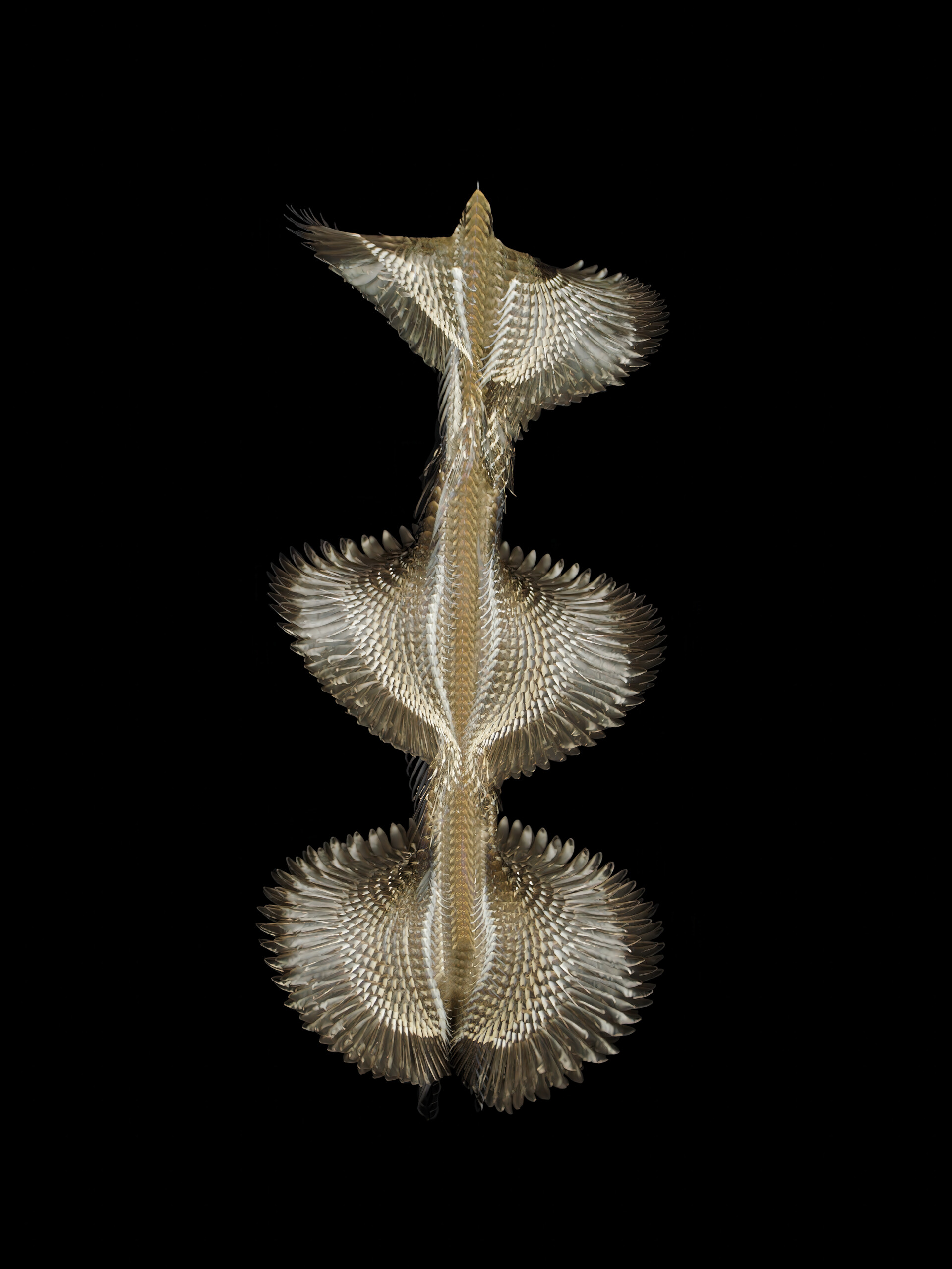 Realizado en colaboración con ornitólogos y centros de recuperación de fauna, el proyecto garantiza un enfoque ético y respetuoso: las aves son grabadas en el momento de su liberación, en condiciones controladas y seguras. Fluctus se concibe como una colección en crecimiento, donde cada imagen se presenta impresa a escala real, evocando los antiguos gabinetes de curiosidades.