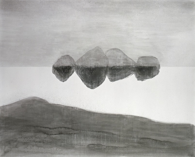 Gao Xingjian es un pintor y escritor galardonado con el Premio Nóbel de Literatura en el año 2000. Empezó a pintar en la infancia, actividad que le llevó al campo literario escribiendo narraciones y poemas, obras de teatro e incluso trabajos musicales; fue traductor de francés y guionista en el Teatro Popular de las Artes de Pekín. Sus pinturas no son ni figurativas ni abstractas, pero juegan con la luz y las sombras, de forma que a menudo incluyen siluetas de figuras navegando en la distancia. Xingjian ha descrito sus trabajos en tinta como una auto-purificación. Después de haber sufrido persecución policial y haber sido forzado a destruir sus obras durante la Revolución Cultural, Gao Xingjian deja China por una vida en el exilio en París, en 1987.